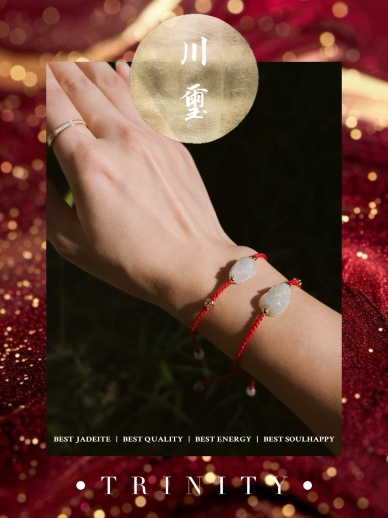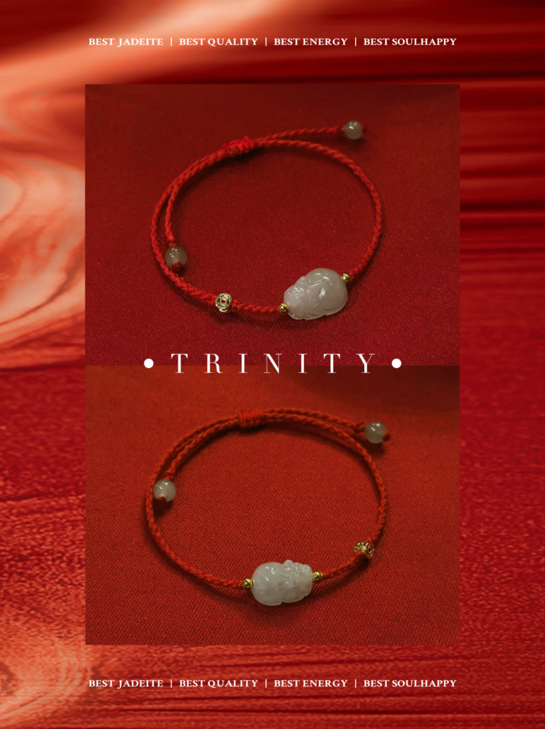 以純淨翡翠為心,紅繩為脈,象徵「守護、連結、啟運」三重能量。